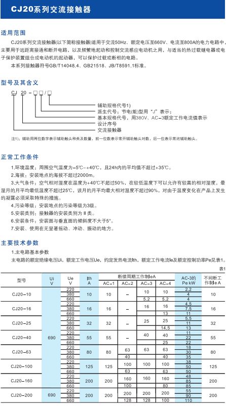 CJ20系列交流接触器