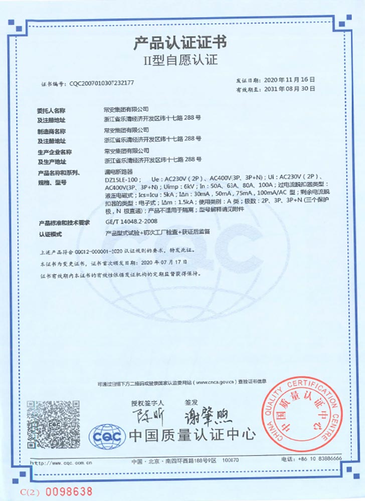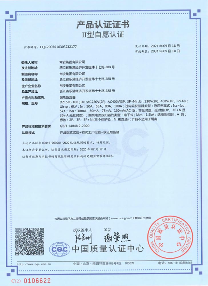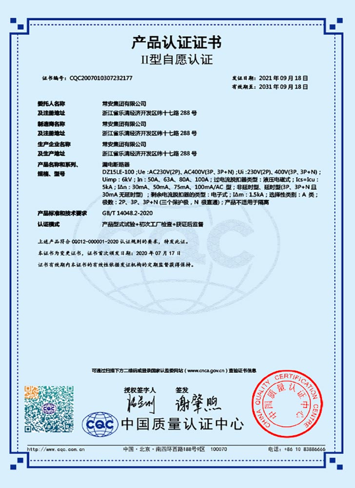DZ15LE-100系列塑壳漏电断路器