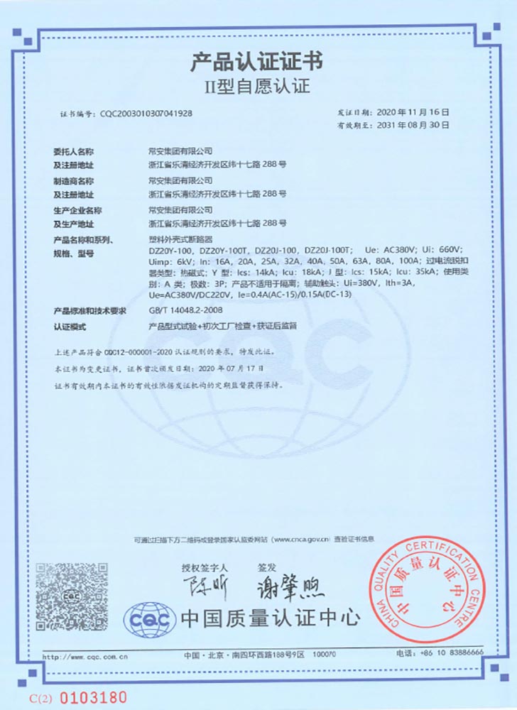 DZ20Y系列塑壳断路器