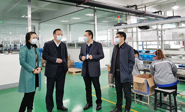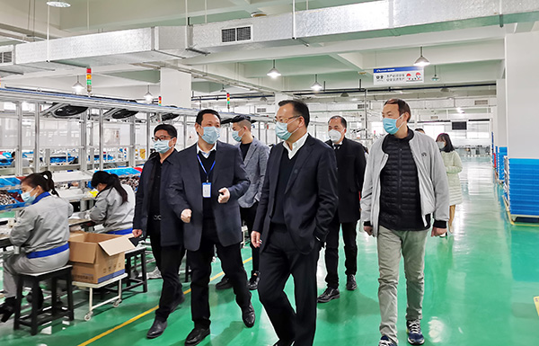 赵部长一行在常安集团董事长高海余,公司行政总监谢云龙的陪同下,对常安集团复工复产以来的有关情况进行了全面深入的了解。高海余董事长向赵部长汇报了企业复工复产以来员工到岗率、产能恢复率以及市场销售、后勤保障和疫情防控等方面工作。高海余说今年春节的突发疫情确实对企业的复工复产造成了很大影响,好在公司近年来一直加大技改投入力度,并利用机器换人使企业生产自动化水平得到了有效提高。集团公司及旗下各专业化公司在疫情面前不仅没有知难而退,而是进一步通过生产班组优化、工装设备改进和制造工艺提升等方法,充分调动全体人员的积极性和创造性,努力使企业快速走出困境。常安集团国际电器制造部、输配电制造公司也先后利用自身的专业优势提升人均生产率,力争实现减产不减效。