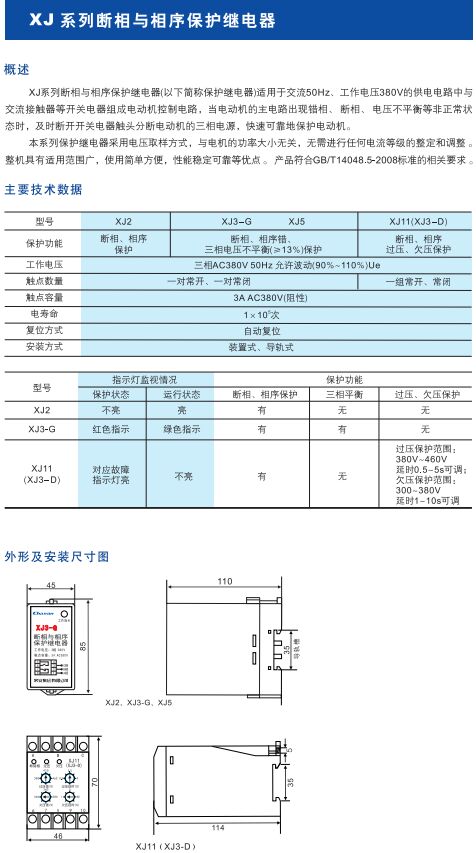 XJ系列断相与相序保护继电器 XJ系列断相与相序保护继电器